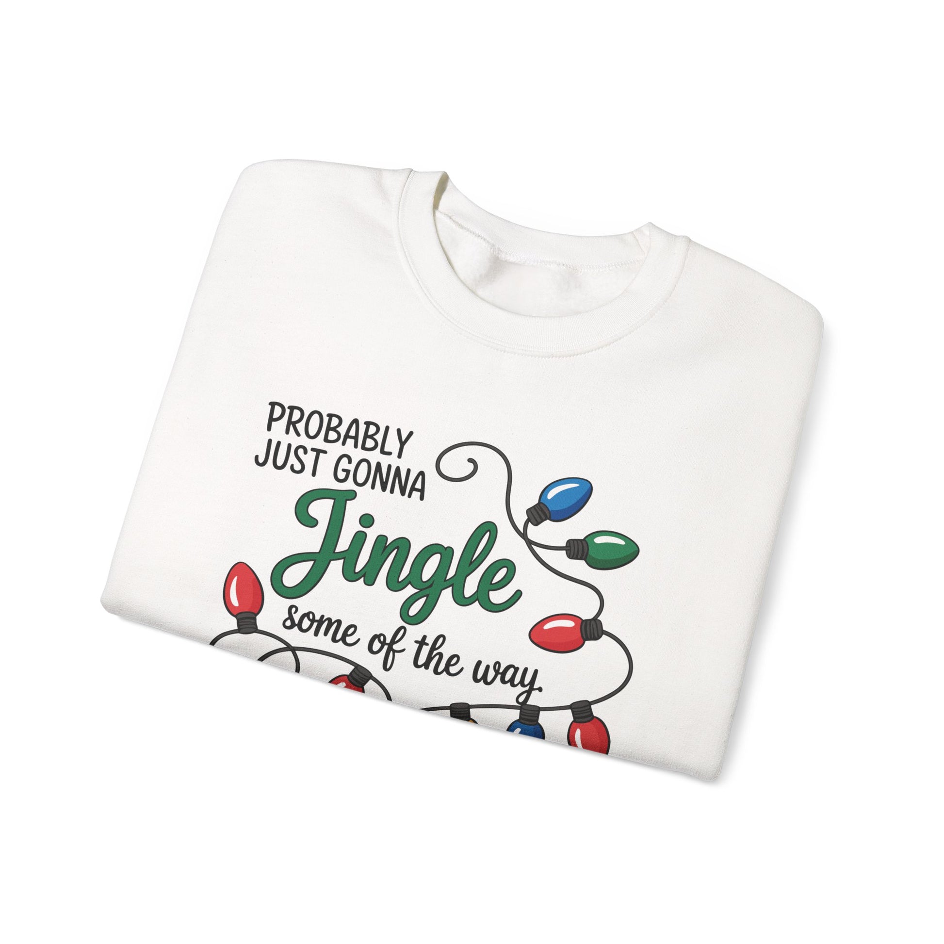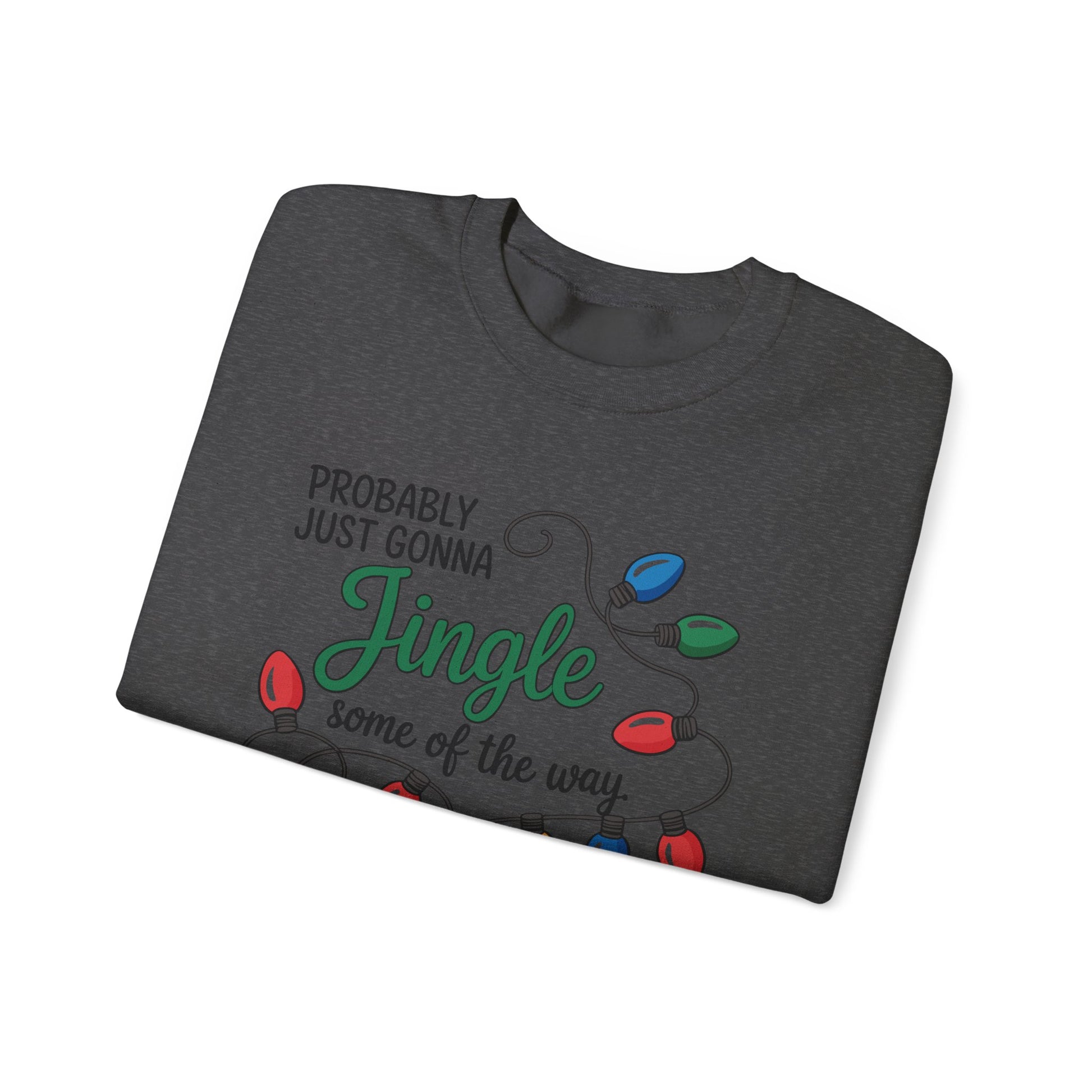 Crewneck Sweatshirt — "Probably Just Gonna Jingle Some of the Way, I'm Tired" Christmas Lights Holiday Pullover