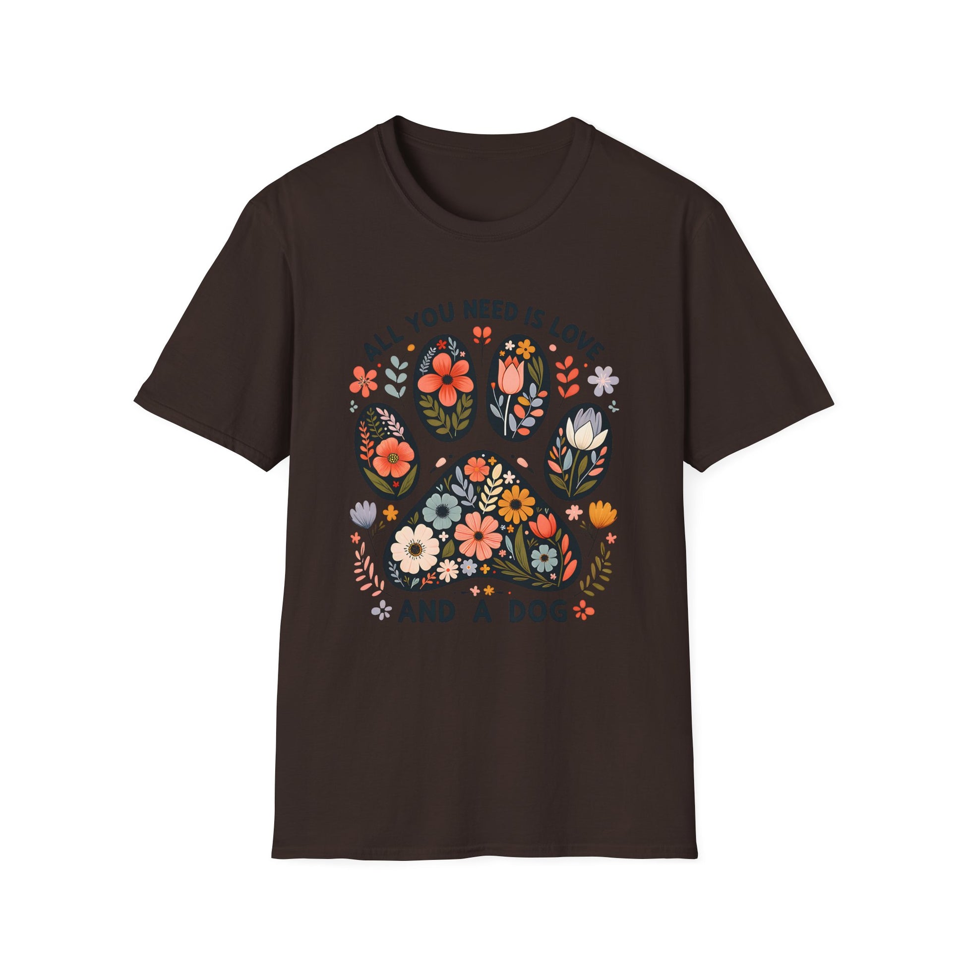 Dog Paw Floral T-Shirt — “All You Need Is Love and a Dog” Cute Pet Lover Tee
