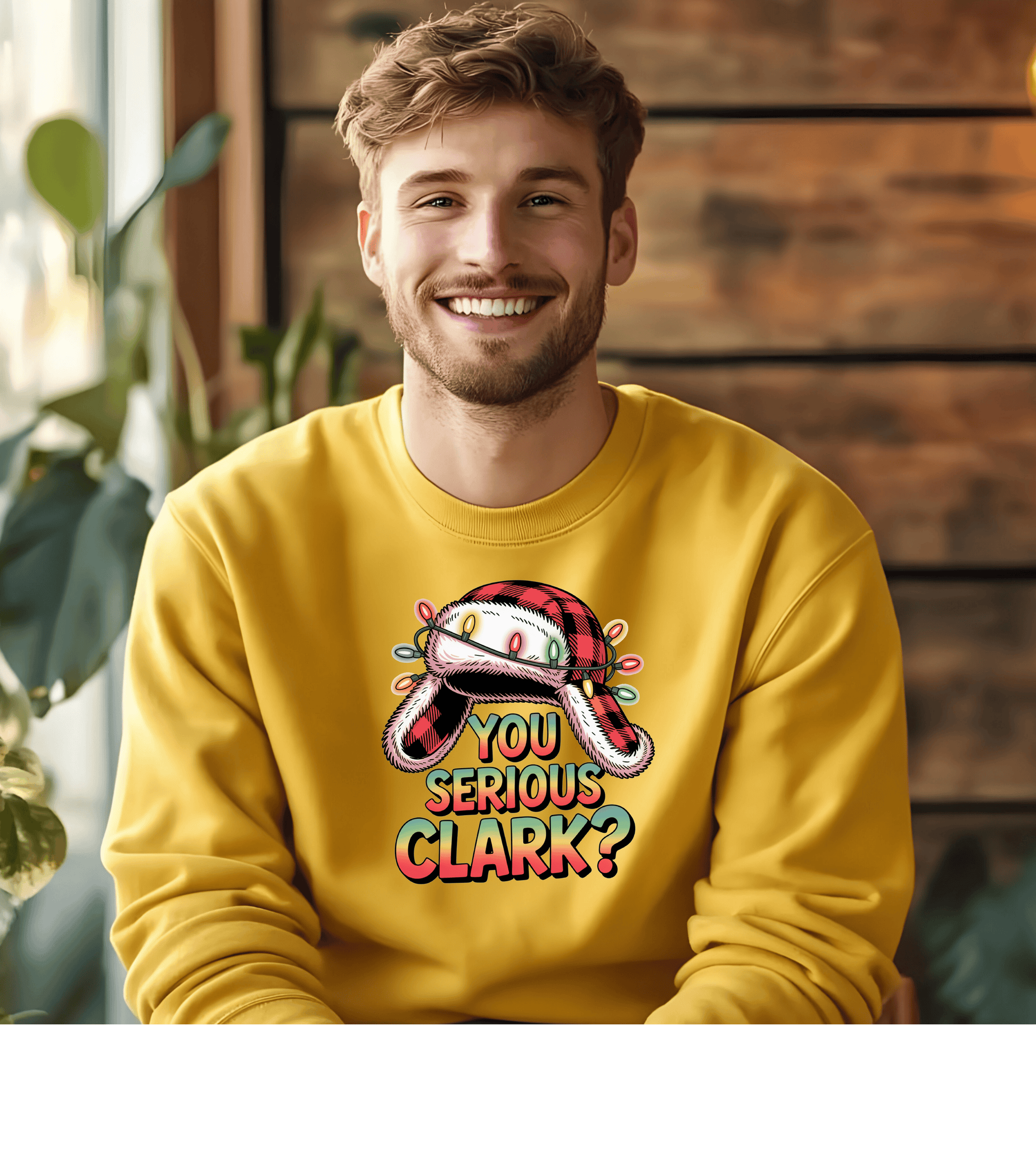 Soft, garment-dyed long sleeve tee with a playful holiday graphic: a plaid trapper hat wrapped in colorful string lights above the cheeky phrase “You serious Clark?”. The medium-weight ring-spun cotton feels broken-in from day one, draping in a classic fit that’s comfortable for lounging, running last-minute errands, or starring in family gatherings with a wink. Ribbed cuffs hold their shape while double-stitched hems and neck/shoulder twill tape keep the shirt durable through repeated wear. Subtle vintage tones from the after-construction dye process give the print a lived-in, nostalgic look that pairs easily with jeans, cozy socks, or a flannel over-shirt.